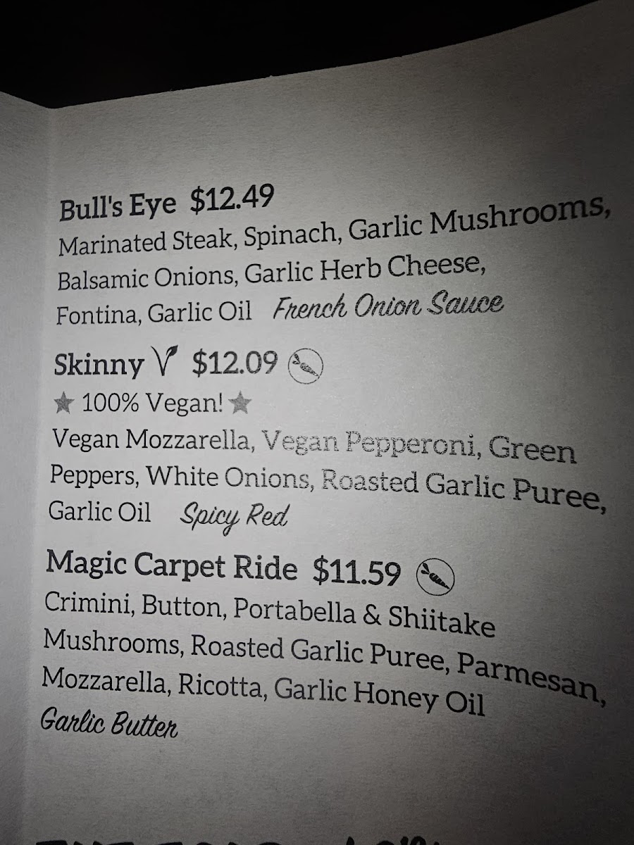 Pepperoni / Meatballs / White Onion / Provolone / Roasted Garlic Puree / Mozzarella / Ricotta / Garlic Oil / Spicy Red Sauce