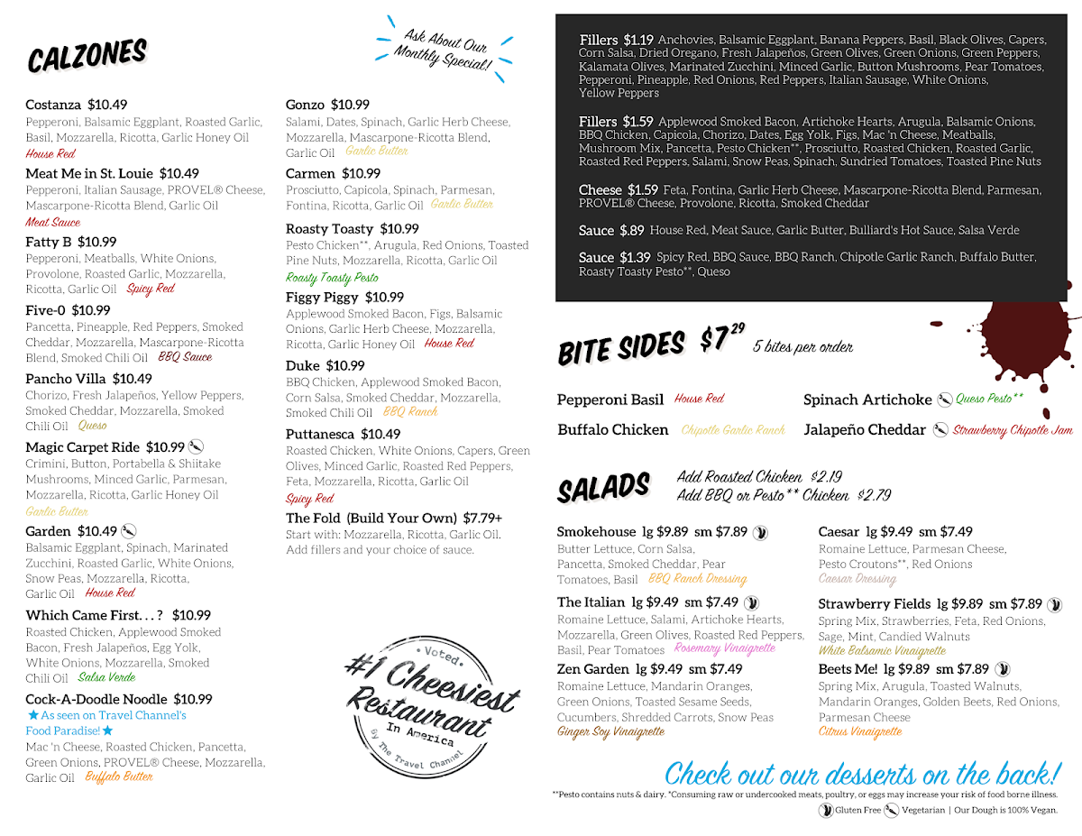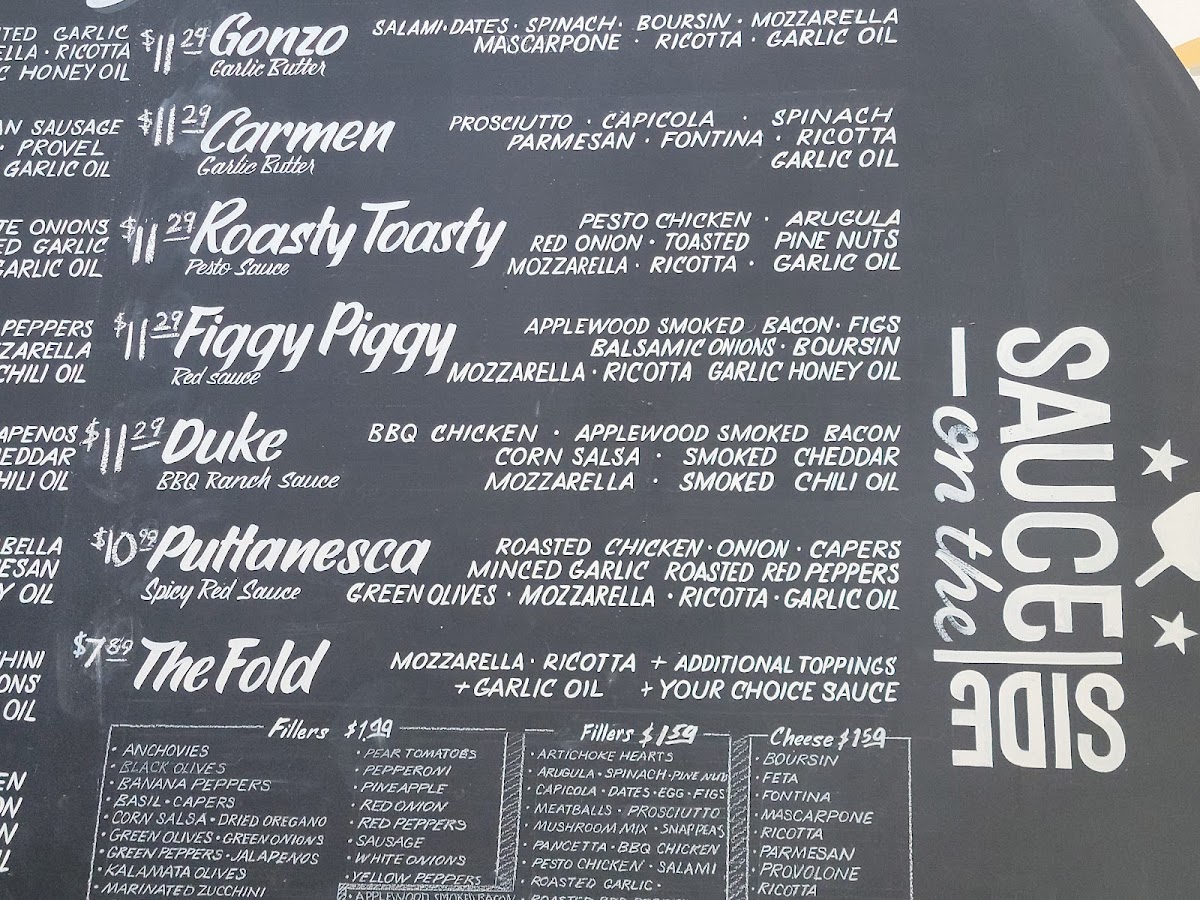 Build Your Own. Start with Mozzarella and Ricotta. Add any fillers and your choice of sauce. Finished with Garlic Oil.